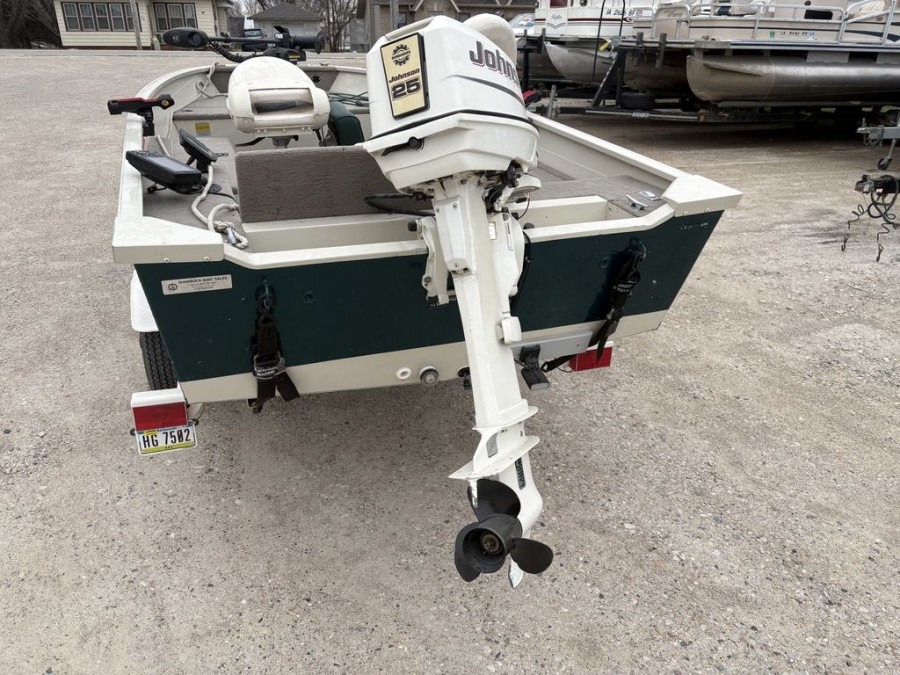 This versatile motorboat is equipped for reliable performance thanks to its outboard engine setup. It features a powerful Johnson Bombardier single outboard propulsion system delivering 25 horsepower.