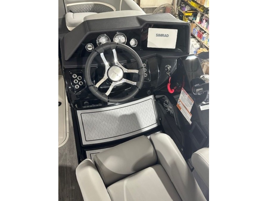 This powerful pontoon boat is built with quality materials and robust components, ensuring reliability year after year. The Mercury outboard engine delivers reliable performance for effortless cruising in any conditions.