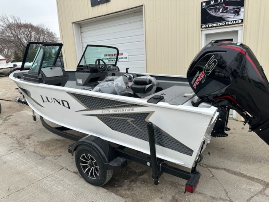 This Lund 1775 Adventure Sport is equipped with robust components designed for optimal performance. The accompanying trailer ensures easy transport and secure storage.
