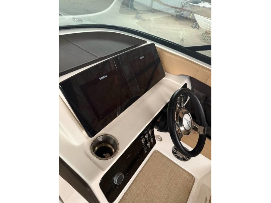 Enjoy cutting‑edge features such as Quiet Ride™ technology, which minimizes vibration for a silky ride. The dual 12″ Simrad Select Response glass dash delivers intuitive controls and real‑time navigation data directly to the helm.