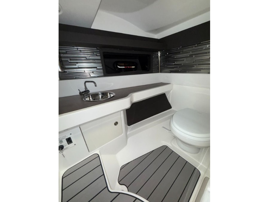 This model offers powerful twin engines, either MerCruiser or Mercury Verado outboards. The advanced joystick steering system ensures precise handling while Dynamic Running Surface (DRS) technology ...