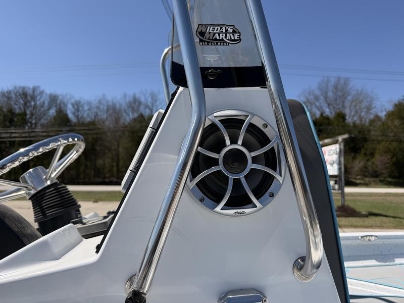 This particular used center console is outfitted with numerous high-end upgrades, ensuring you are ready to hit the water immediately. The electronics package includes a powerful Garmin 93SV unit mounted in the console area, providing advanced navigation capabilities for every fishing trip. Complementing this technology is a premium sound experience courtesy of the installed Wet Sounds system and an appearance package that elevates the entire vessel's aesthetic.