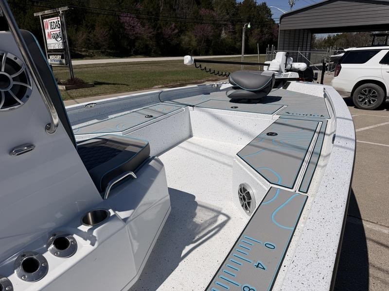 The performance heart of this boat features reliability with its Yamaha 200 SHO outboard motor, providing robust power for traversing various conditions. For optimal handling on any body of water, it includes specialized components like the Atlas Hydraulic Jack Plate and durable 8-foot power pole blades. Storage is maximized with integrated tackle management solutions from Minn Kota Instinct Quest.