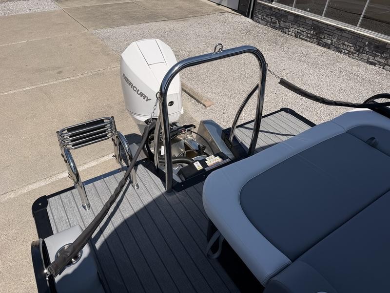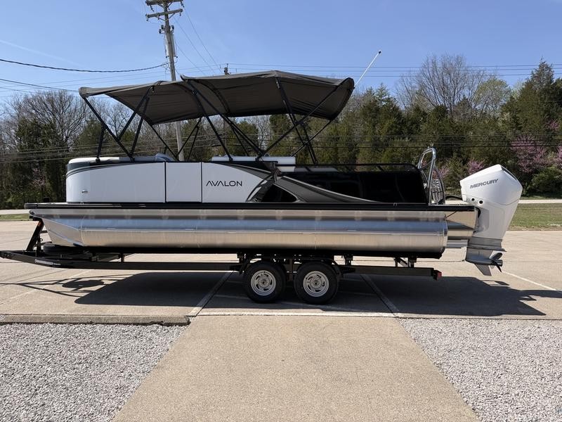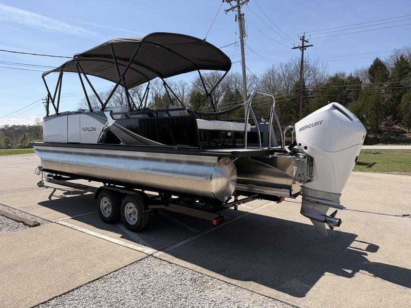 The exterior of your **Avalon LSZ 23 ft pontoon** combines robust functionality with refined aesthetics. The hull is built upon two sturdy 25-inch diameter pontoons, ensuring stability and reliability for all conditions.