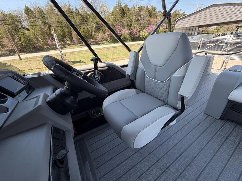 Control is effortless thanks to premium helm features designed for reliability and ease of use. The comprehensive helmstand includes a large dash area perfect for instrumentation, alongside dedicated side storage space. Key electronic amenities include: