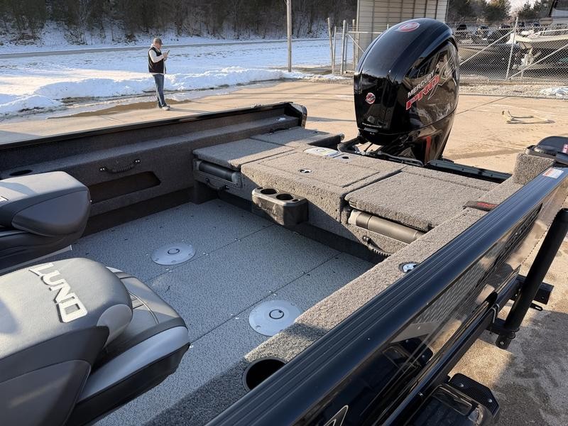 Powering your adventures is a robust setup designed for efficiency and speed. This boat comes equipped with a powerful Mercury 115 Pro XS engine (approximately 115 HP), providing reliable propulsion across various water conditions. With top speeds ranging from 35 to 47 MPH, the Lund ensures you reach your destination quickly while maintaining excellent handling characteristics thanks to its IPS hull design.
