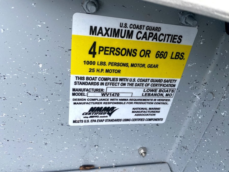 The Lowe WV1470 is highly adaptable and can be powered by a wide range of reliable outboard motors to match your specific requirements. Available engine sizes include 5 HP, 6 HP, 8 HP, 9.9 HP, 15 HP, 20 HP, and even up to 25 HP.