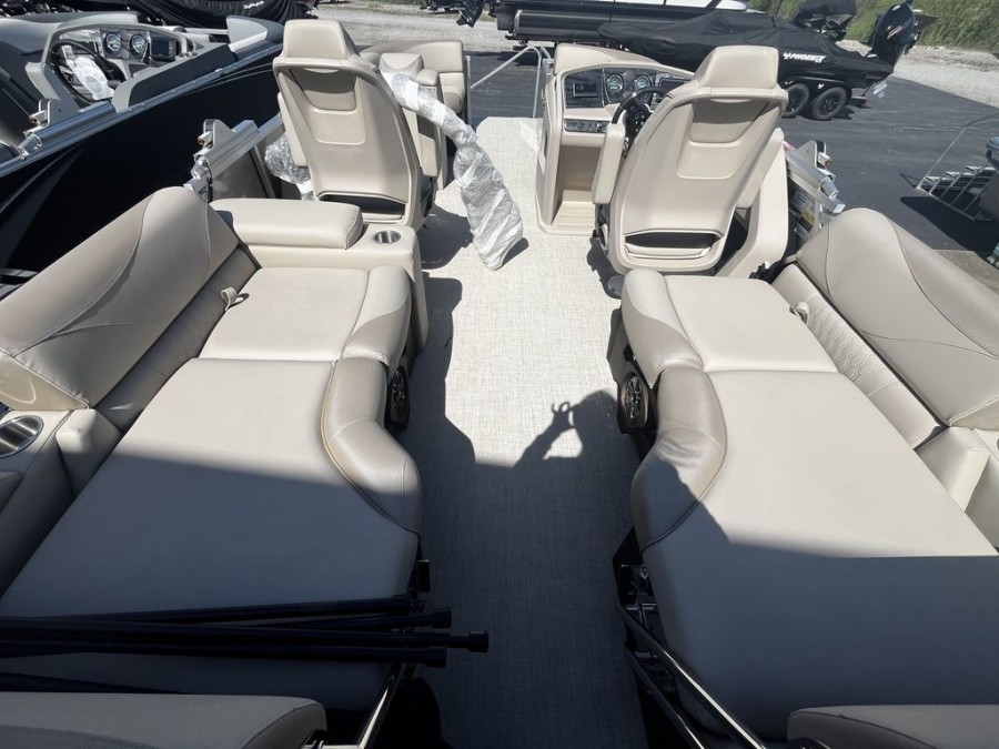 The Avalon LSZ QL boat boasts an extensive list of high-end upgrades that enhance both functionality and style. Key features include the luxurious UltraFine Touch Vinyl upgrade across various surfaces, complemented by a dedicated Sport Highback Reclining Chair for ultimate comfort during extended trips.