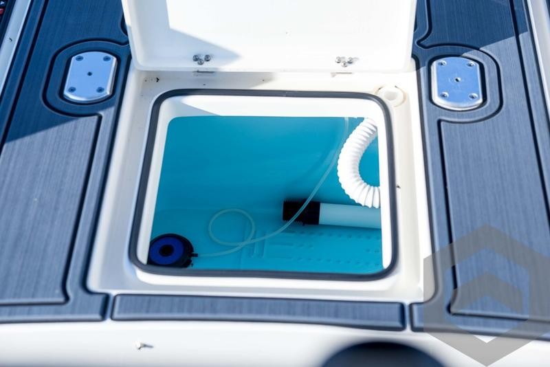 An automatic bilge pump ensures a dry cabin, while the aft center livewell (35 gal) is perfect for fresh‑water fishing trips.