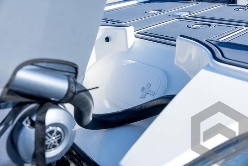 • Self‑bailing cockpit and a deluxe front console cooler mount