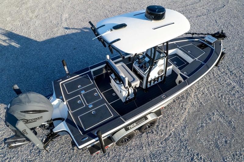 The 2300 HPS features a stepped hull with bustle transom and an integrated 6″ jackplate that maximizes speed while maintaining excellent fuel economy. Vacuum‑infused construction makes the vessel stronger, lighter and shallower than any other bay boat on the market.