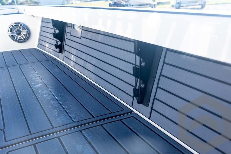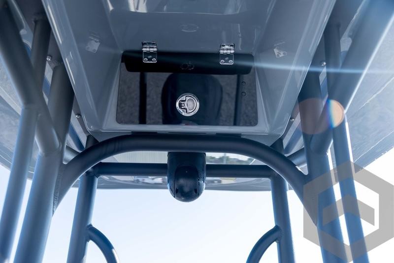 • Under-gunnel storage compartments keep rods protected while you’re off deck