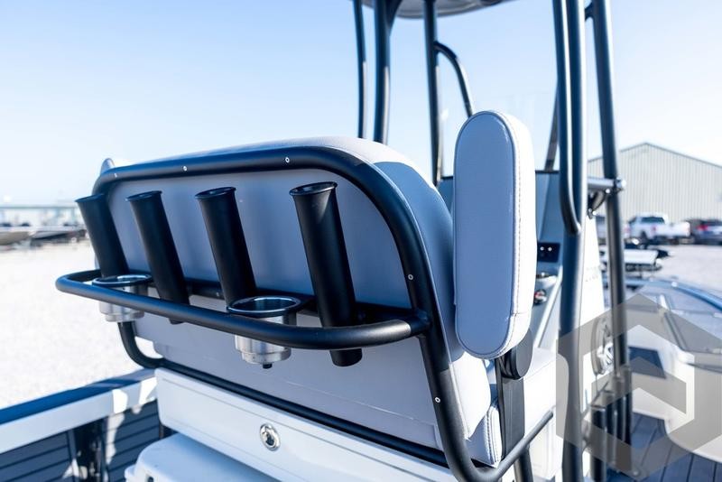 • In-deck cast net lockers, locking rod holders on the gunnels, and a 4‑bank console rod rack