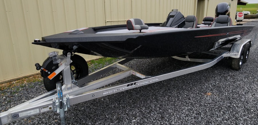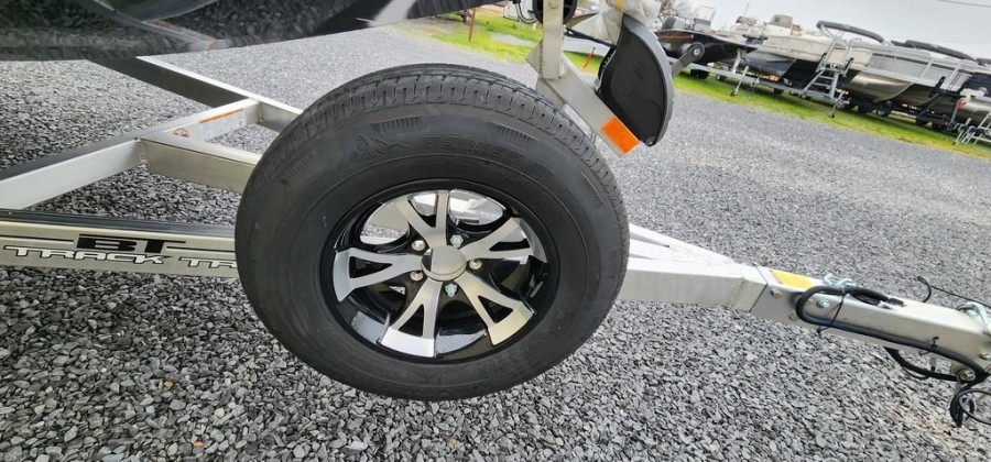 The H20Bass is paired with a BackTrack single axle aluminum trailer featuring lightweight wheels for easy towing and reliable storage when docked or at home.