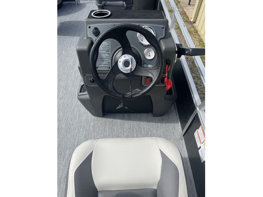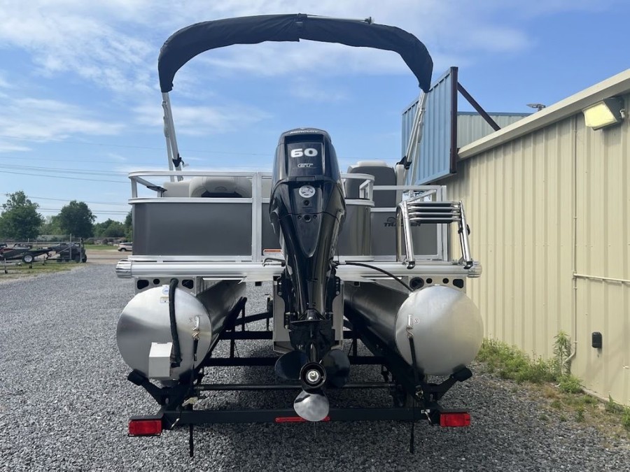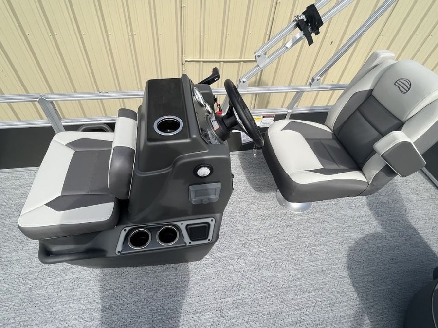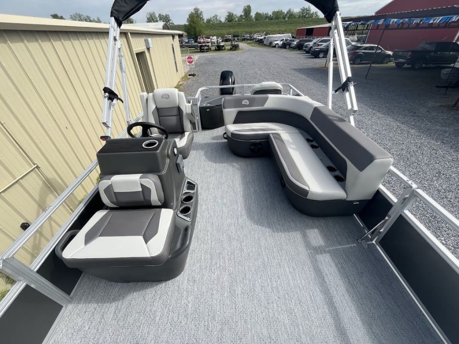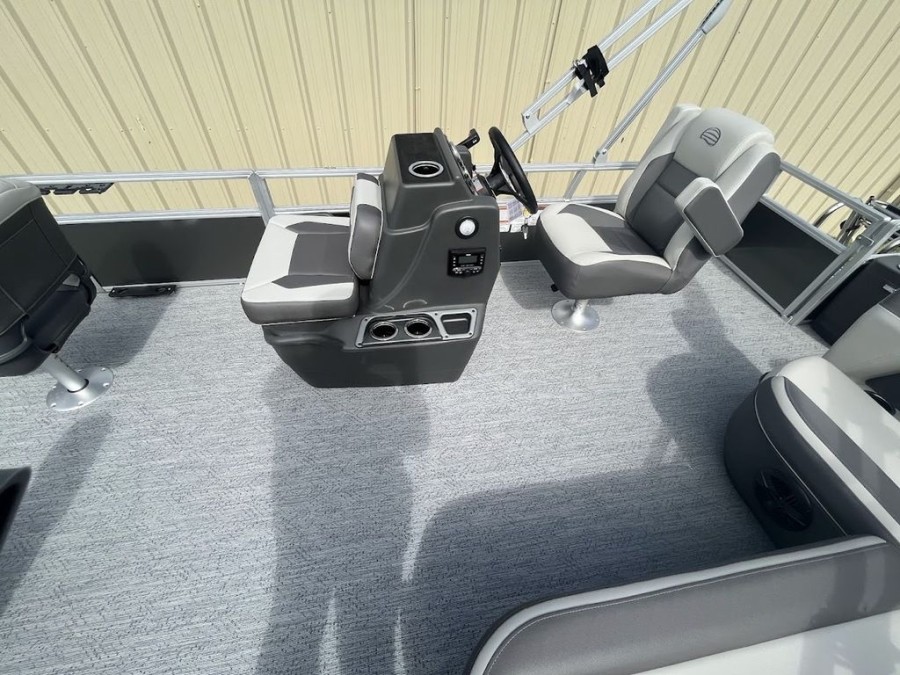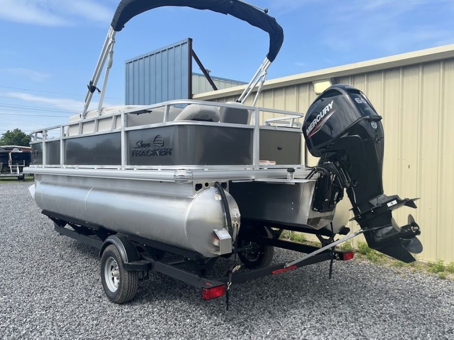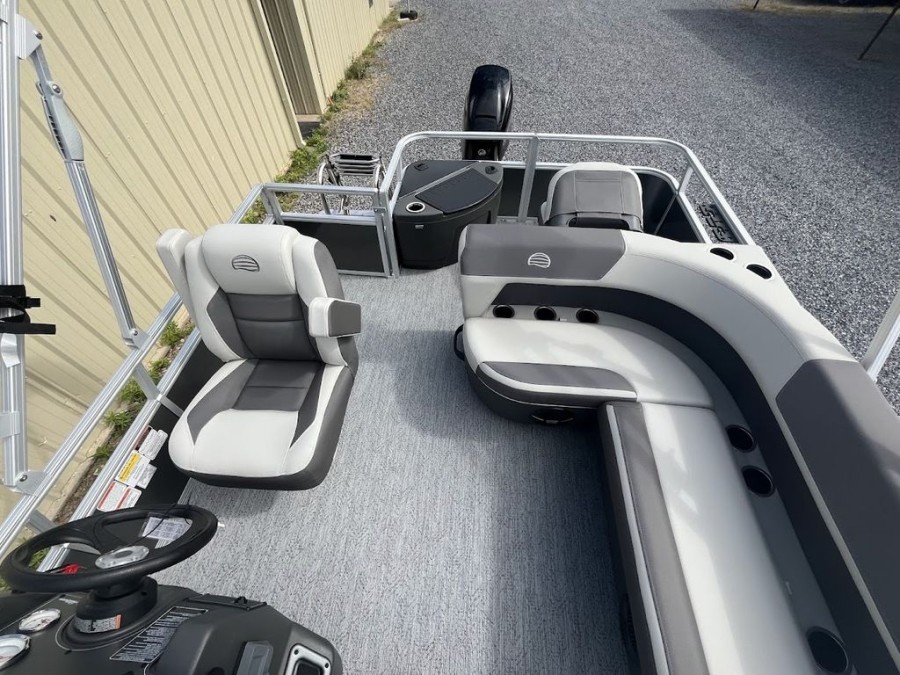 The construction quality highlights the commitment to durability that defines Sun Tracker boats. Key structural components include high-buoyancy multichambered pontoon logs and heavy-duty Z-bar deck supports, ensuring stability whether you are idling or moving across open water.