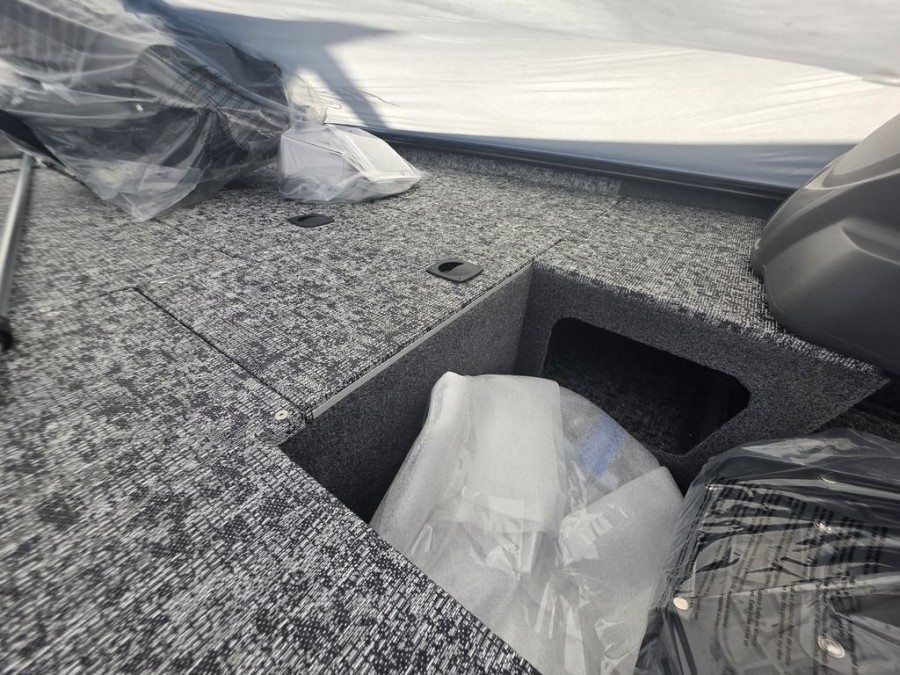 The boat features a 15‑gal. aerated livewell at the bow with a bait bucket holder (bucket not included) and standpipe overflow. A high‑flow aerator/fill pump delivers 500 GPH to keep your catch fresh.
