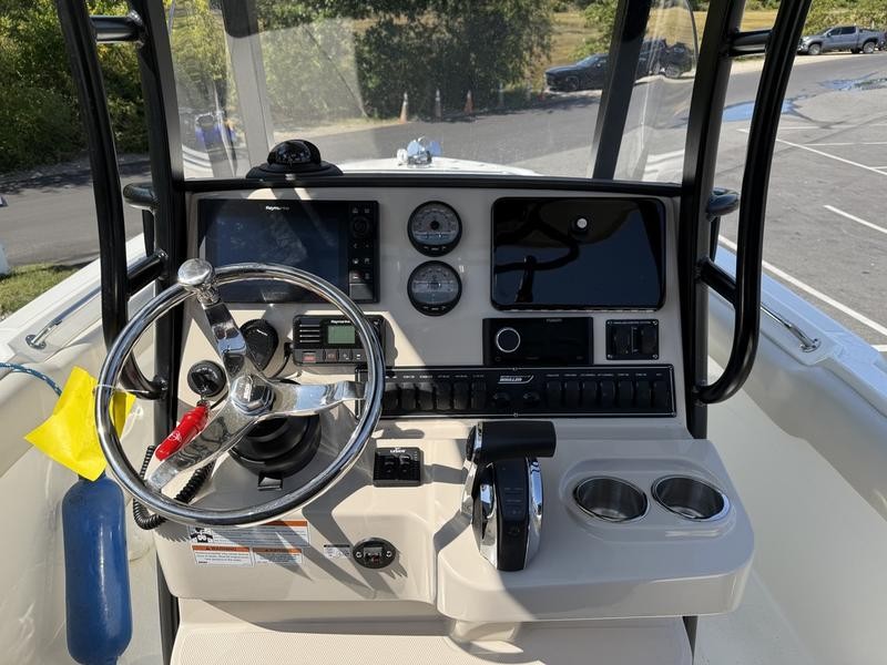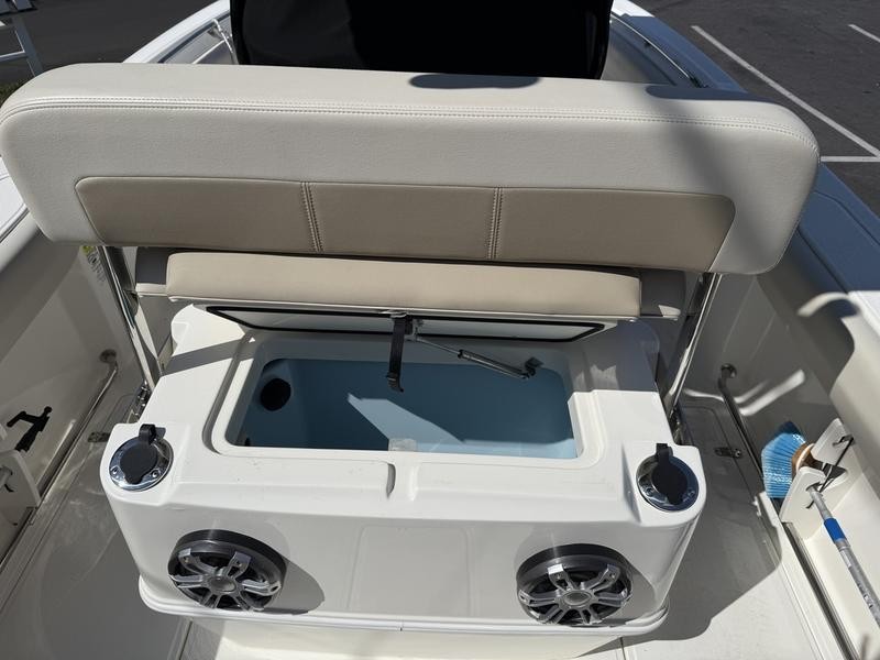 Staying connected and oriented is effortless thanks to premium technology installed throughout the console area. The navigation package includes a comprehensive 9-inch Raymarine Axiom Pro RVX electronics/navigation suite, complemented by the powerful Raymarine Q24D Quantum 2 radar unit. These advanced systems ensure safety and precision during all your fishing trips.