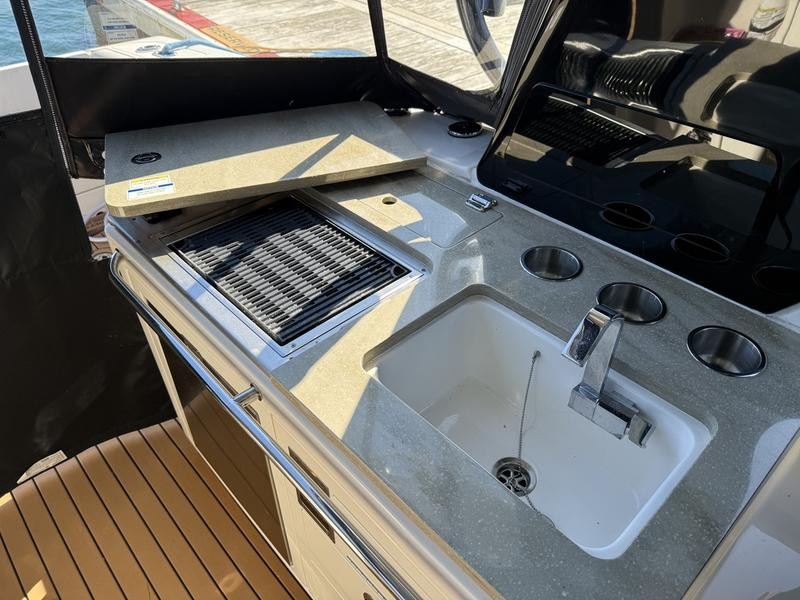 Powering this impressive yacht are robust Mercury V12 engines with Joystick Piloting capabilities. The mechanical design ensures exceptional handling in various conditions, providing reliable performance whether you are navigating calm waters or heading far offshore. Key technical features include:
