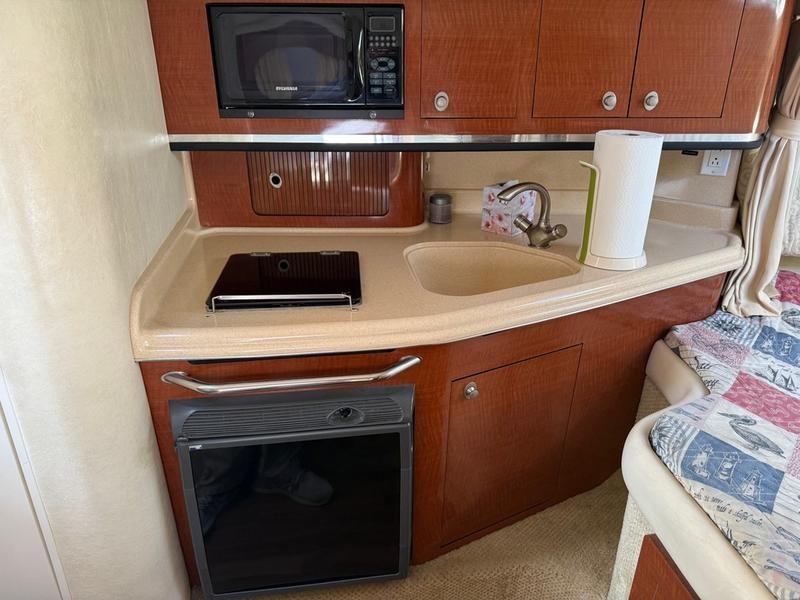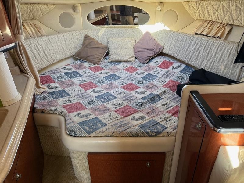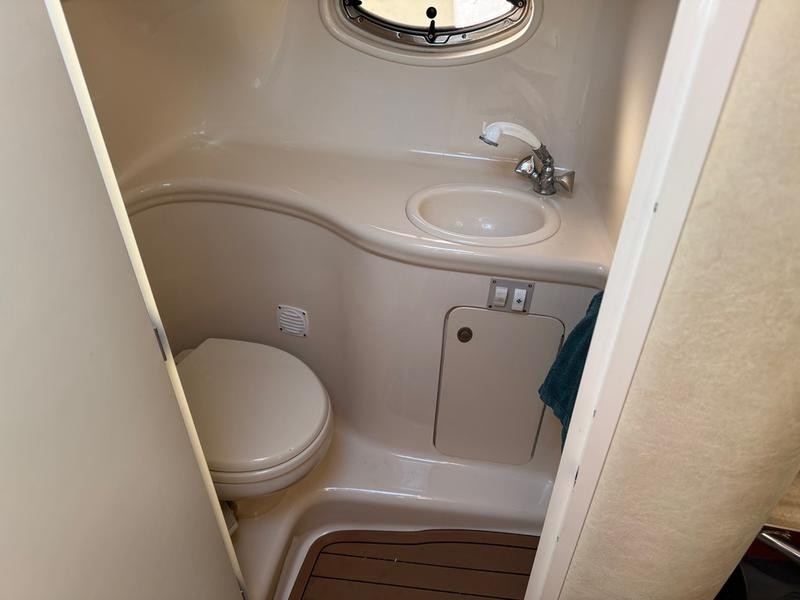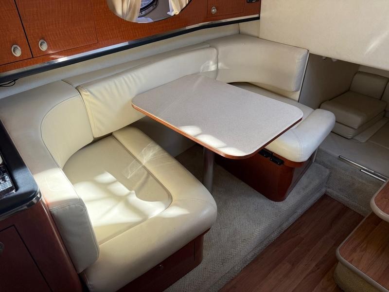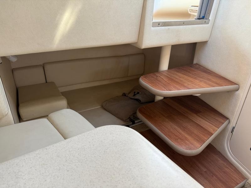 The interior has been upgraded with premium features designed to enhance comfort during long days on the water. These details elevate this 29-foot cabin cruiser experience.
