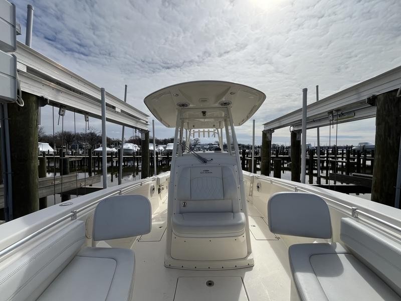 [read more]Discover unparalleled performance and luxury with this exceptional used center console model, the 2020 Cobia 301CC. This powerful fishing boat represents a significant upgrade in design and capability, building upon the legacy of its popular predecessors while setting a new standard for boats in the 30-foot category. Whether you are targeting offshore deep-sea fishing or seeking a comfortable family cruising experience, this premium center console is built to exceed expectations.