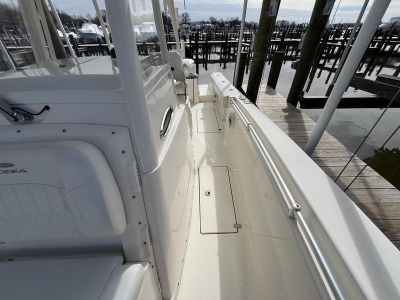 The Cobia 301CC has been engineered with meticulous attention to detail, enhancing both functionality and user comfort. Key design improvements include an inward-opening side door for easy access when hauling large gear or boarding while diving—a major benefit over older models. The spacious cockpit offers ample room for fishing activities and socializing alike.