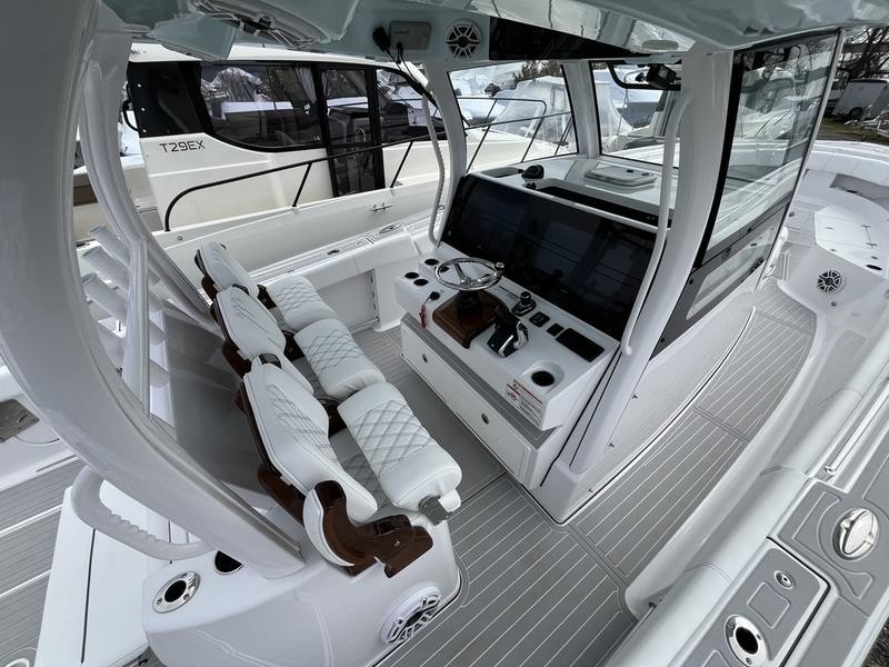 The electronics package on this Sportsman Open is top-of-the-line, offering a fully integrated command center experience. The boat boasts an extensive array of features that streamline your day.