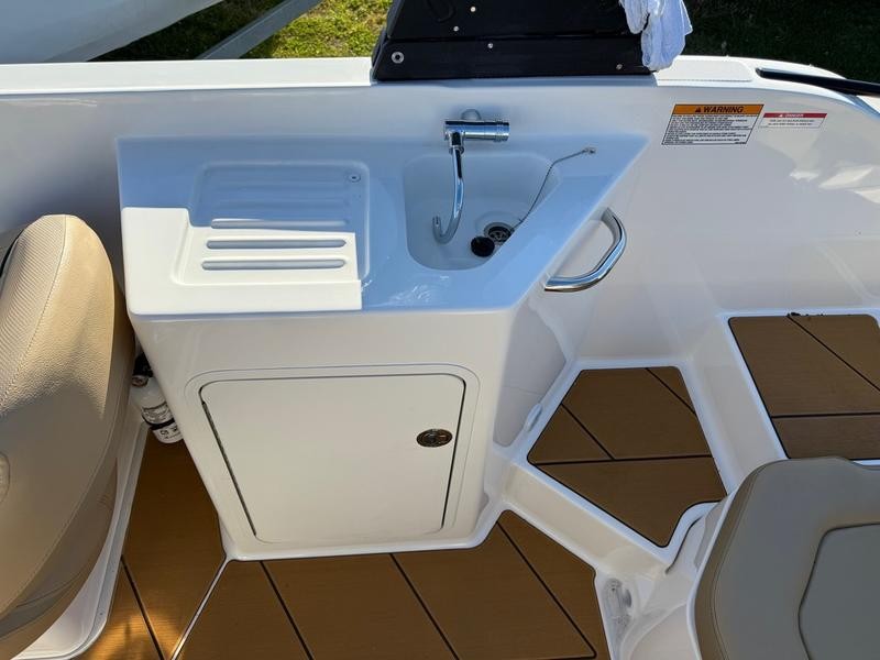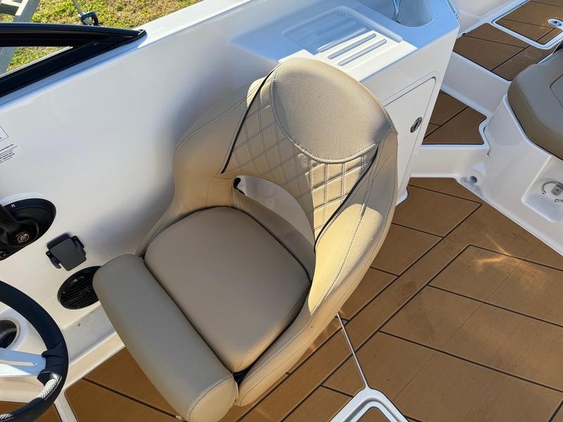 The power package is centered around a reliable Mercury 200hp four-stroke outboard motor, ensuring smooth performance whether you are cruising or towing skiers.