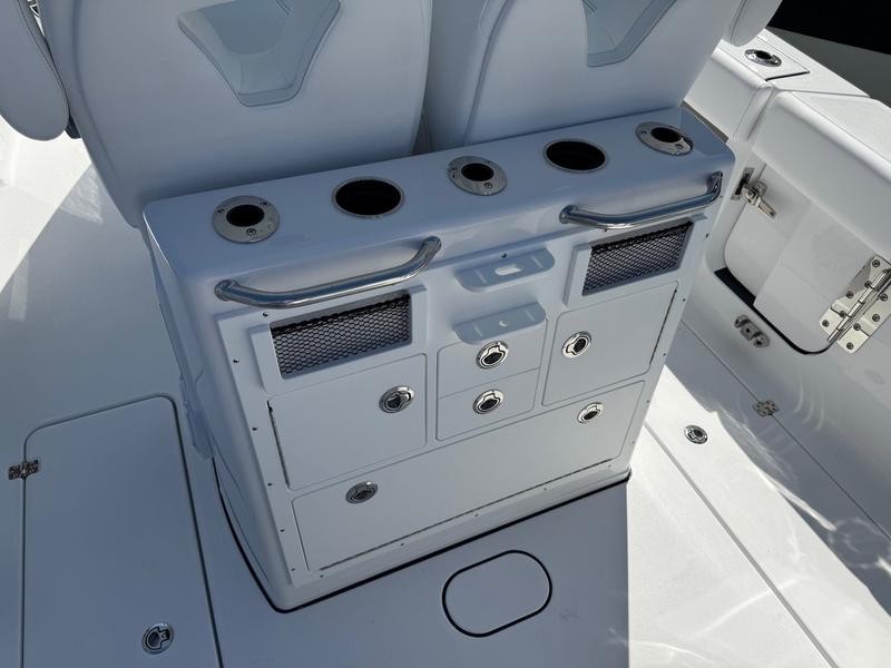 The luxury amenities found on this model elevate it far beyond a typical center console fishing boat. Key design features include:
