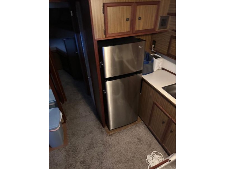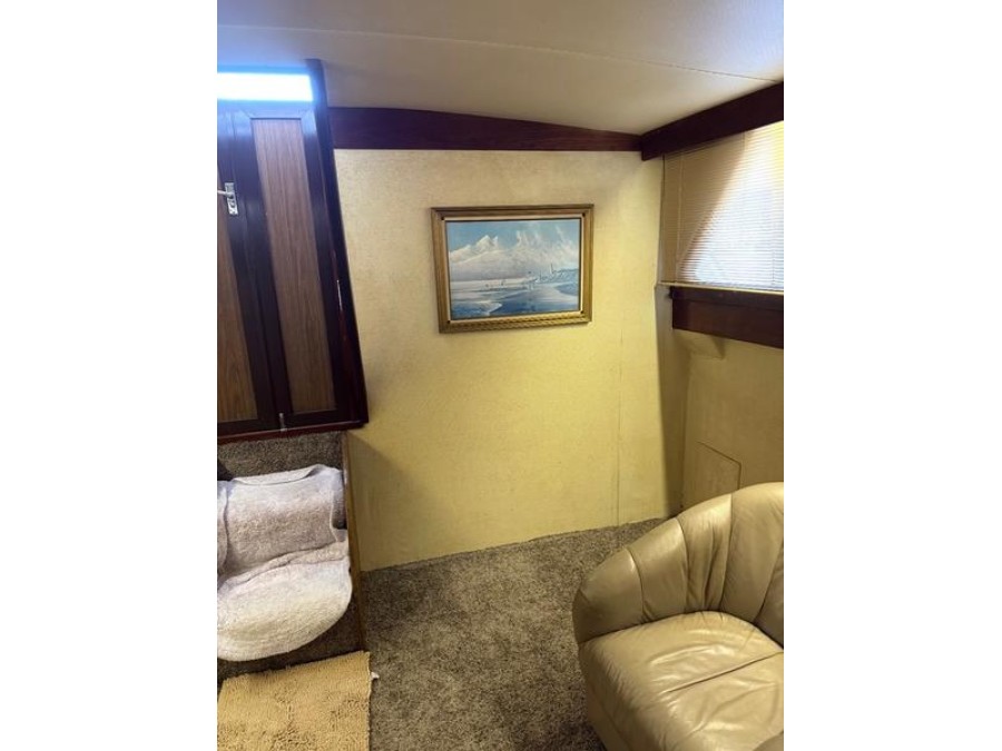 The exterior has been refreshed with newer canvas work, enhancing both the aesthetic appeal and structural integrity of this used Viking boat. Inside, comfort is maintained with new carpeting throughout the cabin areas.