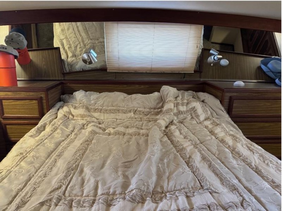 The power plant consists of robust twin engines: two Caterpillar 3208 units, each delivering approximately 375 horsepower. These dependable Cat engines boast original running hours totaling just 1,319 hours. This substantial engine package ensures reliable propulsion for extended voyages in a powerful and stable aft cabin boat.