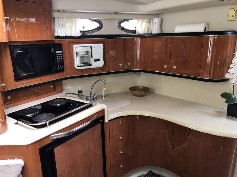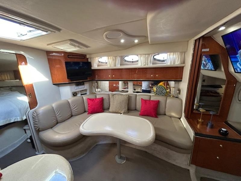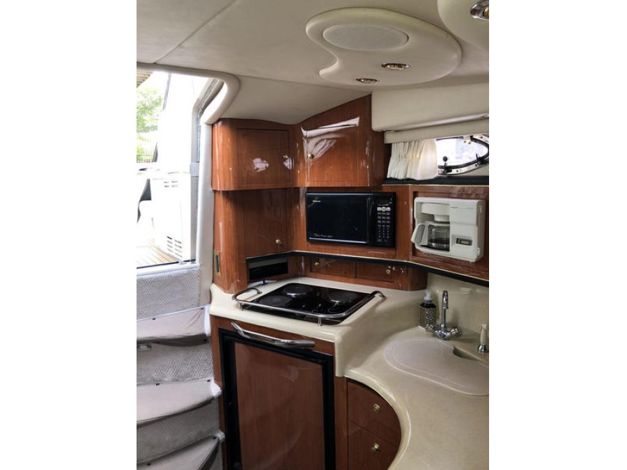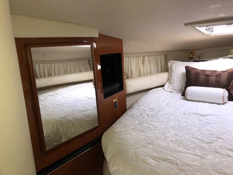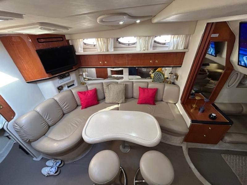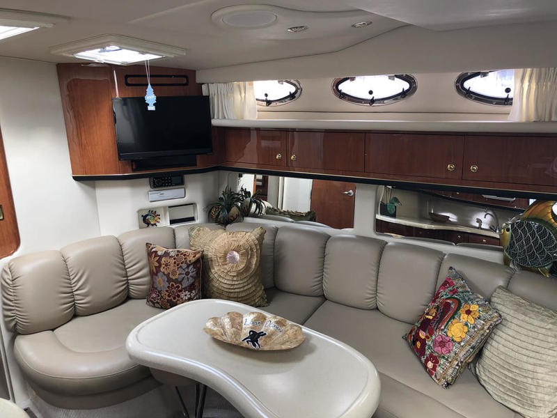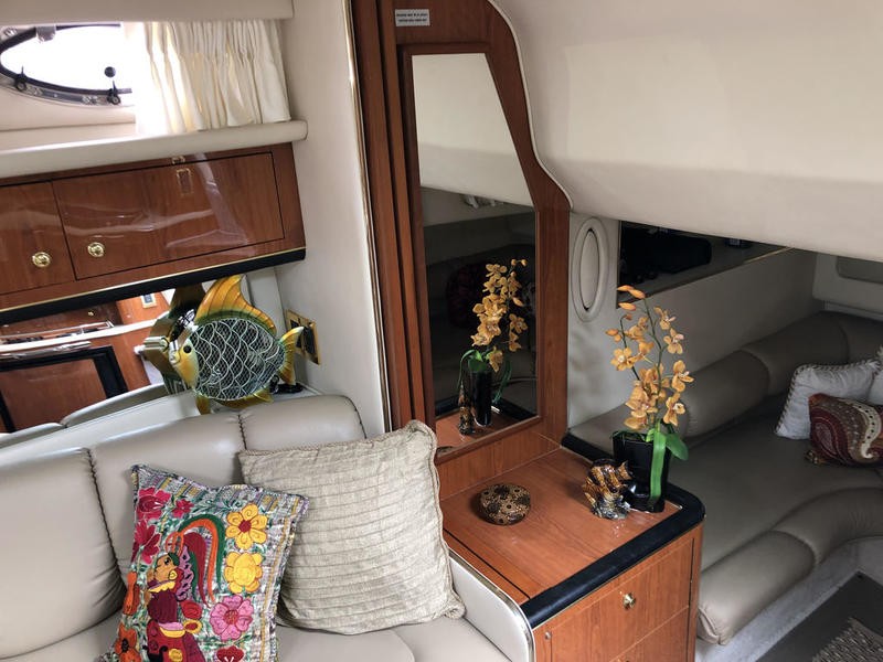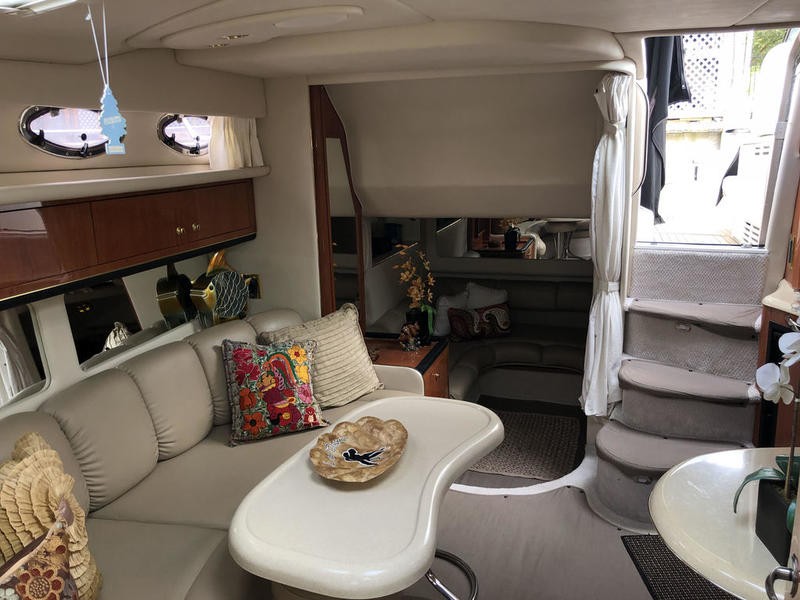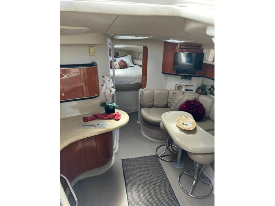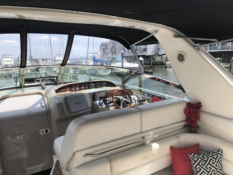 The 1998 Sea Ray Sundancer has been meticulously maintained throughout its life. The low arch was raised in this model year so that owners who are 5’ 8” or taller can comfortably stand at the helm.