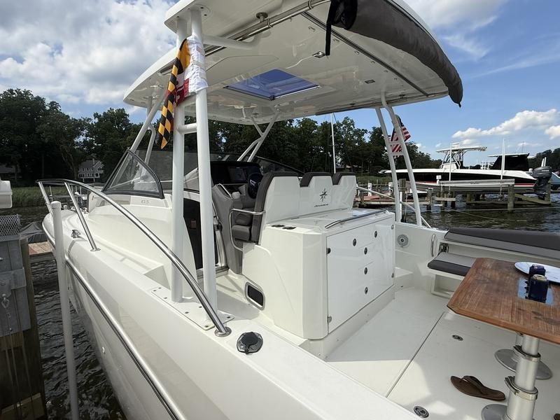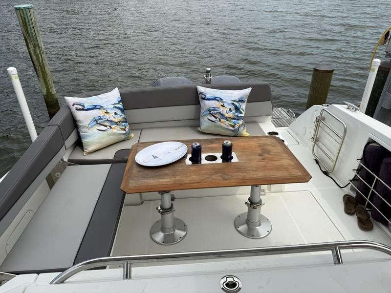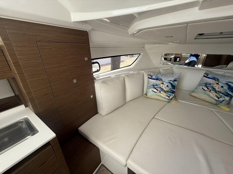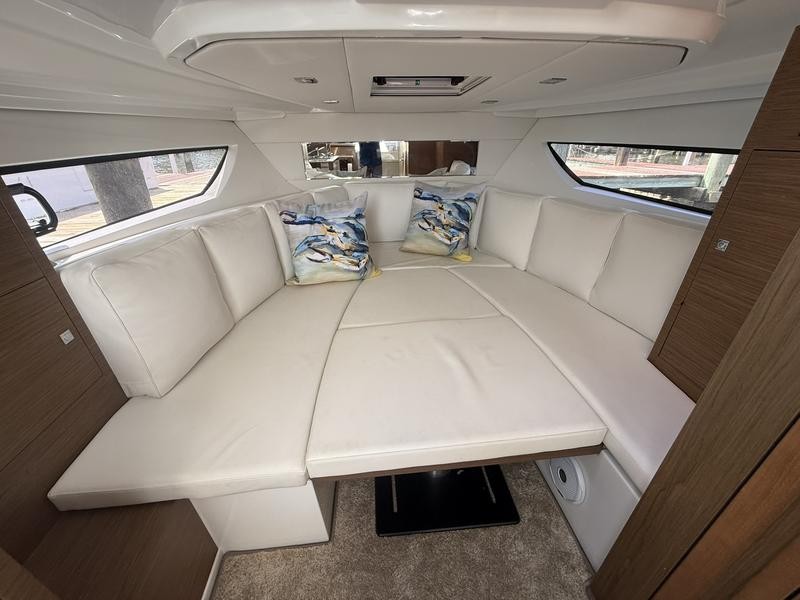 [read more]The 2018 Jeanneau Leader 10.5 is a versatile cruising vessel that delivers high‑speed travel while maintaining exceptional comfort onboard. With twin Yamaha engines, this boat covers long distances efficiently and offers ample seating in the salon, bow chaise lounges, or aft cockpit area—complete with an electric grill, wet bar, refrigerator, and a convertible sun pad.