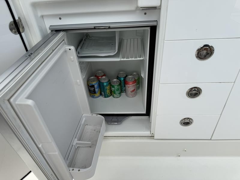 Inside, the Leader 10.5 accommodates families comfortably: it sleeps four guests in a private cabin that opens into the main saloon and features a large aft berth. The galley is fully equipped with a two‑burner propane stove, microwave, sink, and dual Dometic refrigerators/freezers. A spacious head with shower adds to onboard convenience.