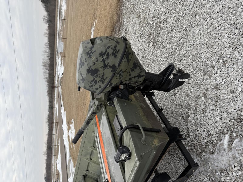The boat comes equipped with a powerful Mercury 9.9 Fourstroke outboard motor, providing ample horsepower for tackling larger bodies of water or pulling heavy tackle all day long. Despite being a used unit, the overall condition speaks to its history as well-maintained equipment, making it an ideal entry point into serious fishing.