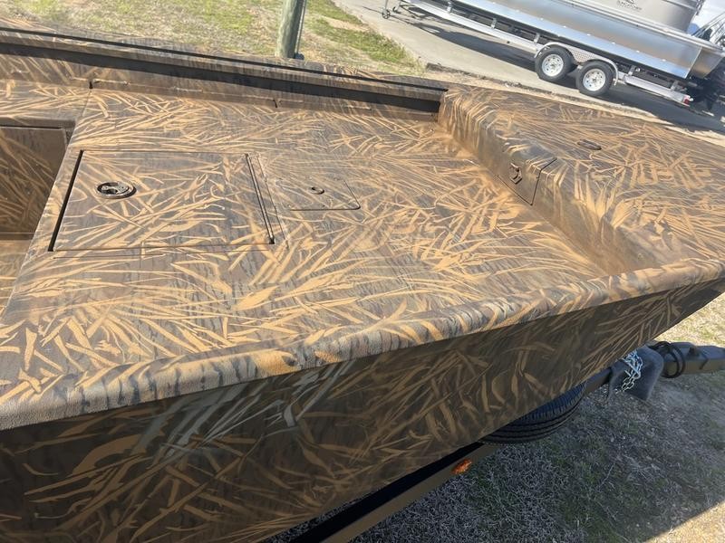 The new model features an enclosed aft deck, expanding usable space while maintaining protection from the elements. Below the catwalk is a handy gear shelf designed to hold small items—ammunition, duck calls, or personal belongings—and serves as a comfortable ledge for seating.