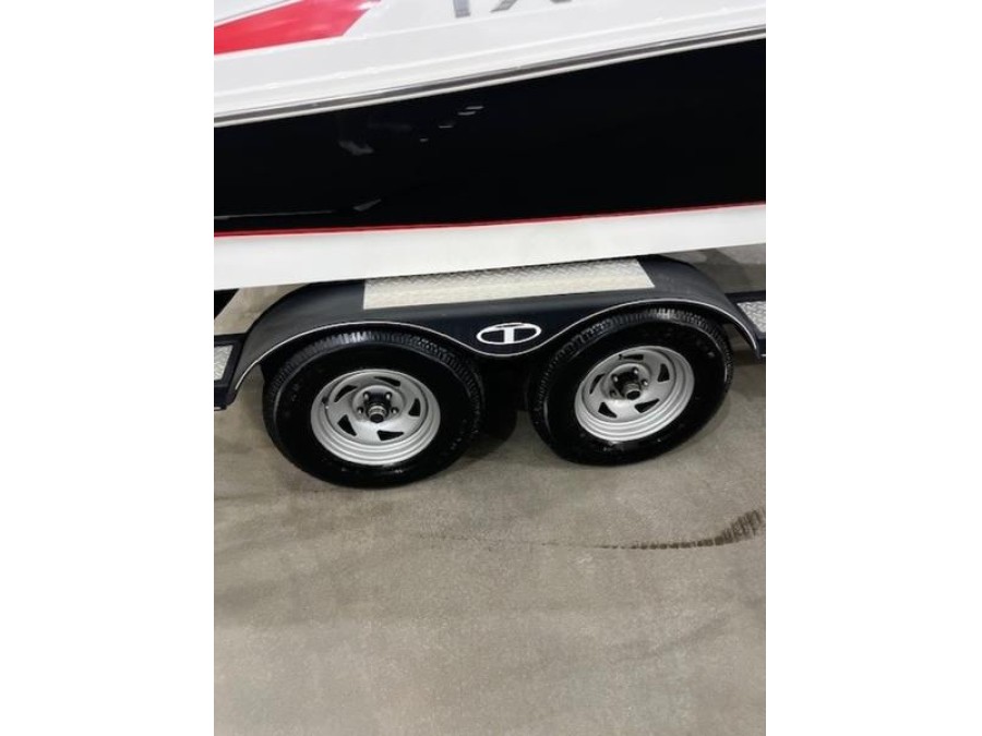 The vessel comes ready on a custom-fit tandem-axle trailer. This robust trailer features powder coating with GALVASHIELD® impact corrosion protection, disc brakes on both axles, and durable radial tires designed for easy towing to any location.