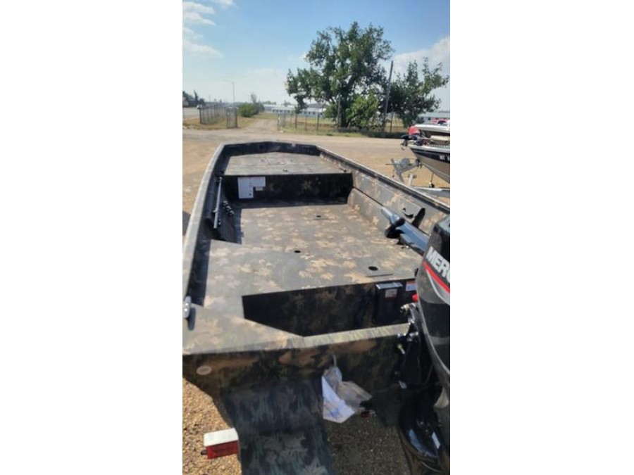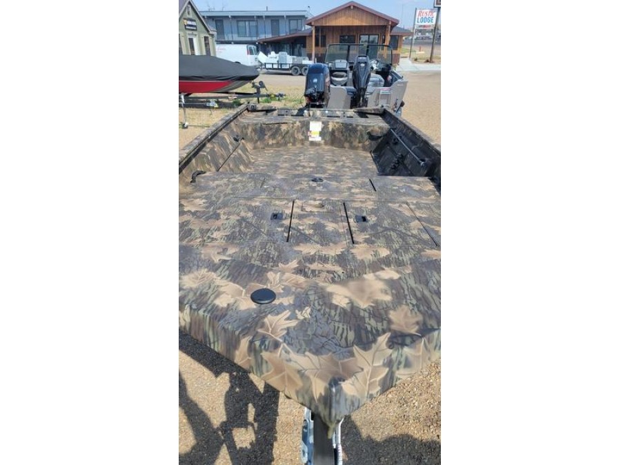 This specific model is equipped with numerous high-quality components, ensuring a top-tier boating experience right out of the box. The boat features a powerful Mercury engine setup and specialized camouflage that enhances its appeal while maintaining functionality for fishing.