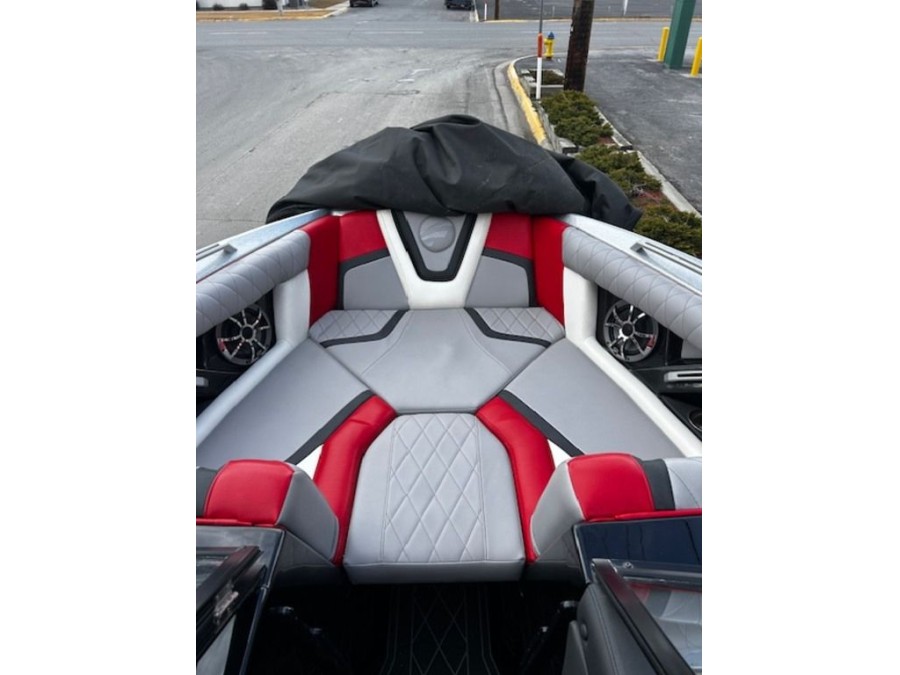 The ZX1’s interior is tailored for comfort. Diamond‑stitched upholstery, a Z‑Cline seat, and a portside transform seating layout ensure crew relaxation after an active day on the water. A YETI Hopper 30 removable cooler keeps refreshments chilled.