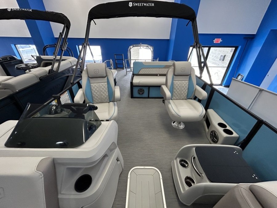 The Sweetwater Lounge models, ranging in length from 23 to 25 feet, are designed for ultimate relaxation. With versatile layouts, premium comfort features, and thoughtful details like windshields or co‑captain seating options, these boats let you lounge the way you want.