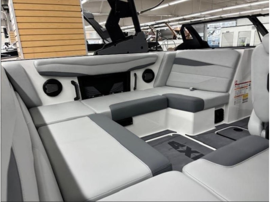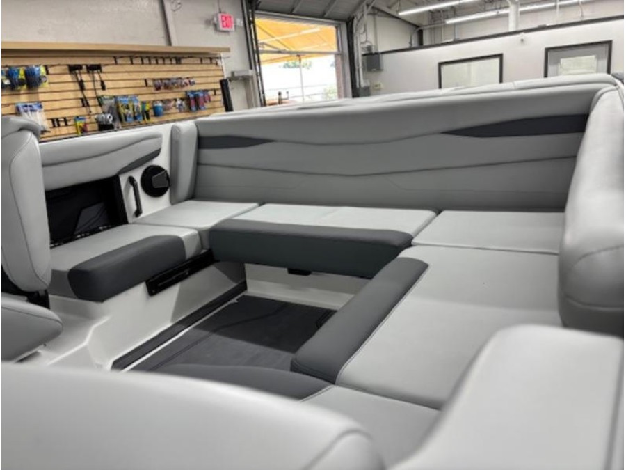 Inside you’ll find thoughtful storage pockets, hinged cushions, and a clean modern lounge area that keeps your crew comfortable while keeping gear within easy reach.