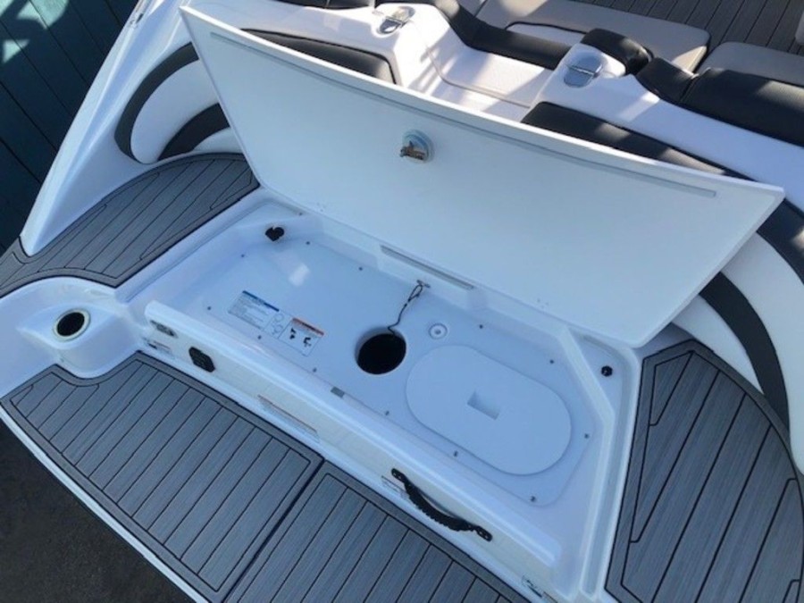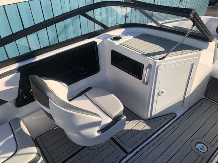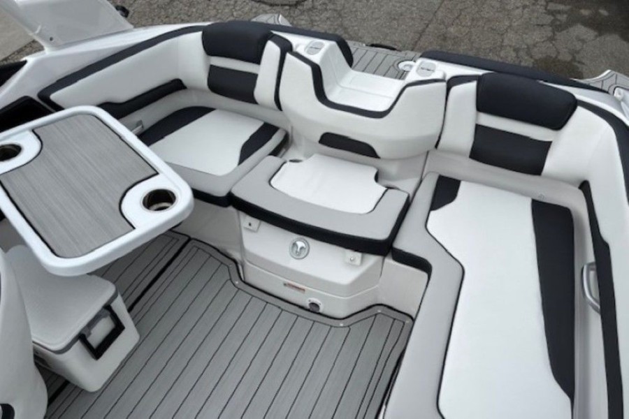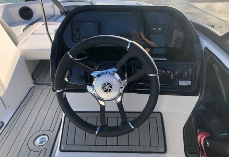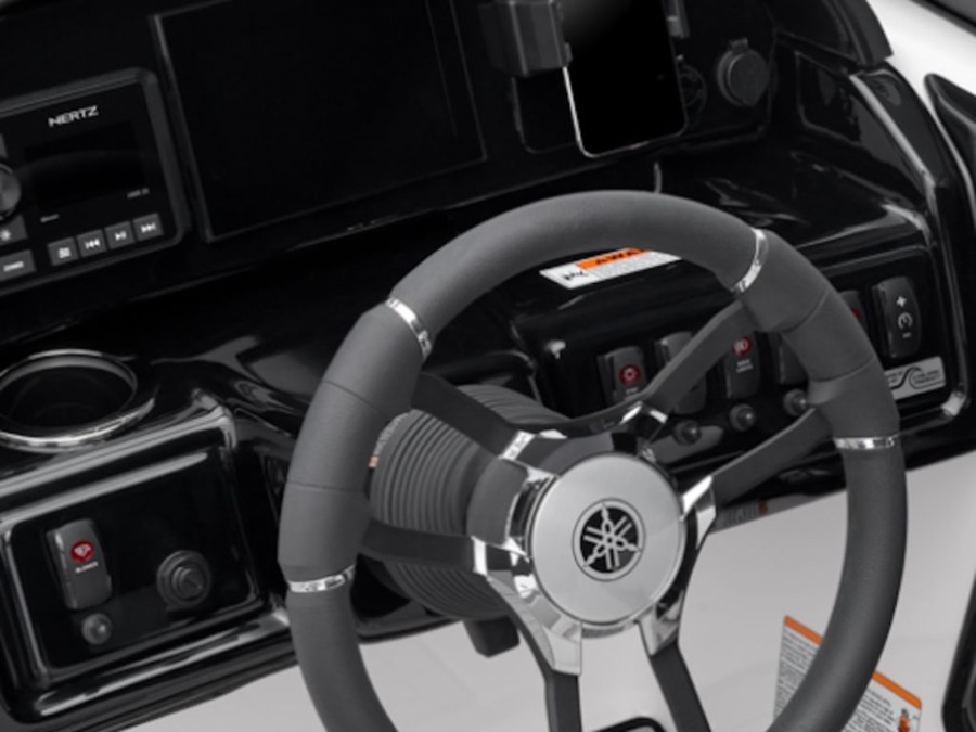 Beyond these key features, owners benefit from high-quality additions like premium Marine Mat flooring throughout, a dedicated co-captain chair for passenger comfort, integrated docking lights, and a convenient stern stereo remote, making every trip effortlessly enjoyable. The reliable power comes courtesy of Yamaha’s award-winning 1.8L Super Vortex High Output marine engine.