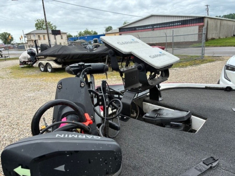 This robust Nitro Z18 bass boat comes fully rigged for immediate action. It is factory-equipped with a powerful Mercury outboard engine, complemented by a Minn Kota trolling motor and custom trailer featuring corrosion protection.
