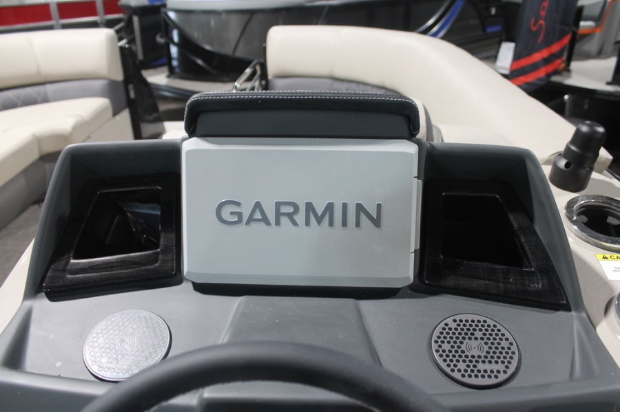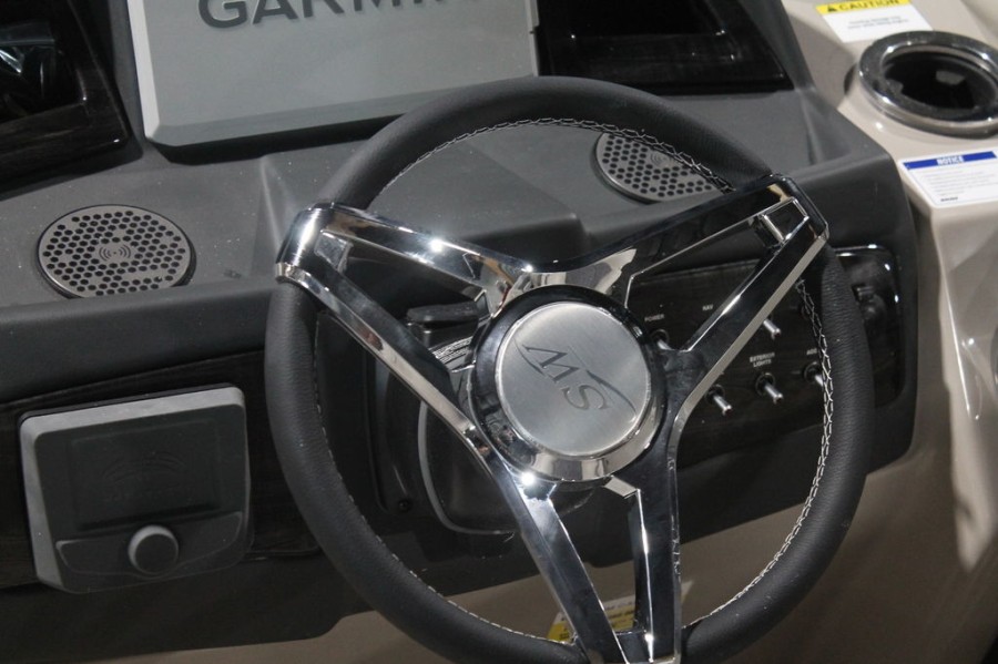 The "SW5" package elevates the boating experience with an impressive list of standard technology upgrades. Key features include a high-end Garmin GPS system for precise navigation and integrated engine data, alongside a rocking Wet Sounds stereo setup that provides superior audio quality throughout the boat. Modern convenience is built in through wireless charging stations conveniently placed at the helm station.