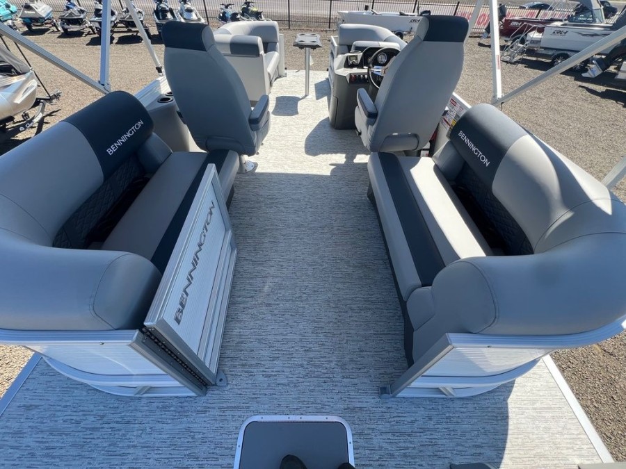This white Bennington 20 SSR S Quad Bench combines luxury design with practical features, making it an ideal choice for family outings or extended cruising adventures. Contact us today to schedule a viewing and experience the difference first‑hand.