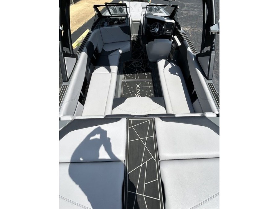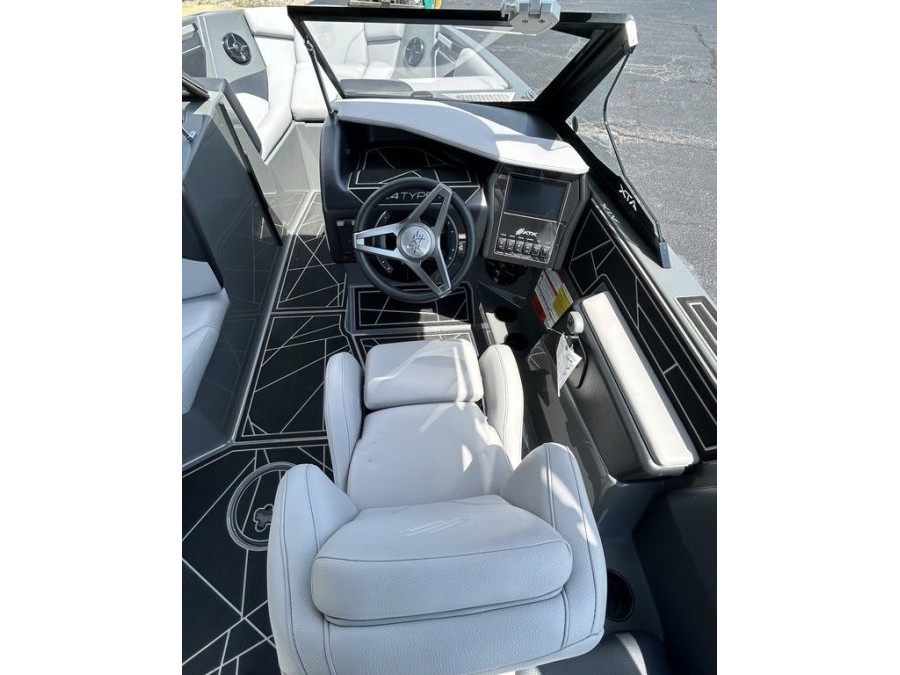 The ATX 24 TYPE‑S features ATX’s patented Convex V Hull that produces wakes larger and cleaner than any other hull shape on the market. Combined with a powerful Indmar 6.2 Raptor engine, you can ride ocean‑worthy waves or execute sharp slalom turns effortlessly.