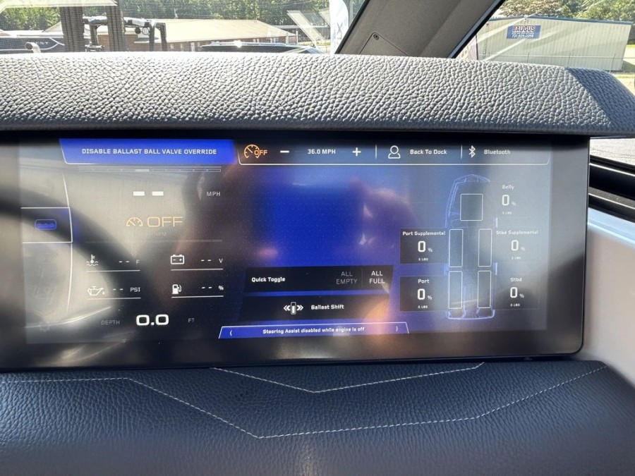 The Integrated Steering Assist feature equips a stern thruster for precise control in tight quarters and straight‑line reverse maneuvers, enhancing docking comfort and overall handling on open water.