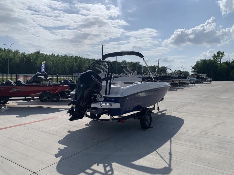 The 2026 Bayliner E18 boat is built to perform under various conditions, supported by a powerful Mercury four stroke motor package.