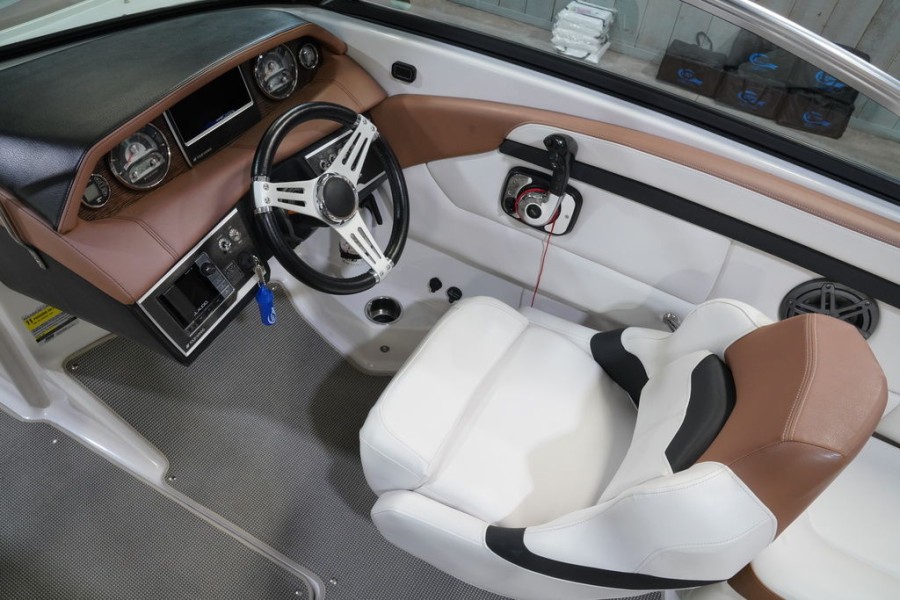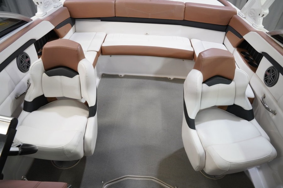 The comfort aboard the Four Winns H230 is unmatched. The seating options cater to every mood; enjoy relaxing in deep-set bucket seats during cruising hours or utilizing the dedicated sundeck area that transforms seamlessly into comfortable lounge seating. These thoughtful design elements enhance both daily usability and overall enjoyment, making it a truly classy boat.