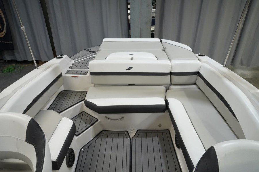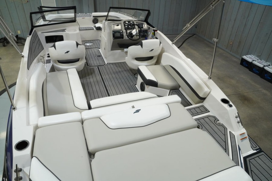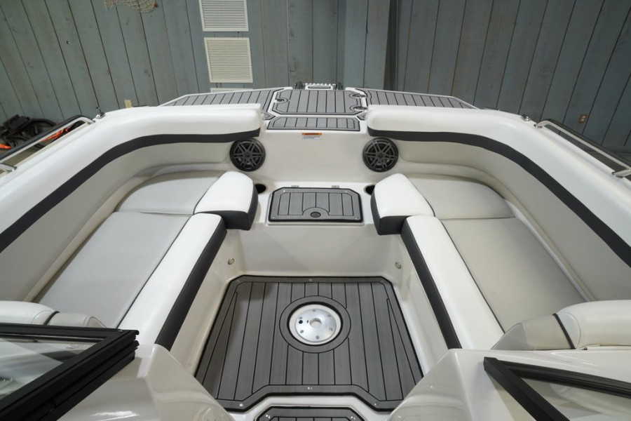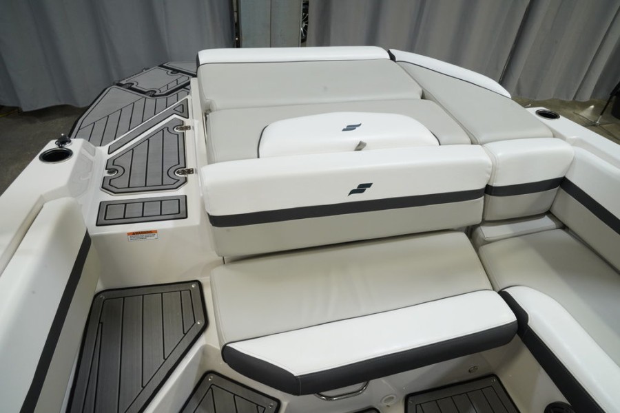 The 2023 SVX IO 230 comes loaded with standard features designed for comfort and convenience right out of the box. Owners benefit from premium components including a marine-grade stereo system, full sun protection via the bimini top, and durable EVA Soft Touch Traction Mat flooring in both the bow and stern areas.