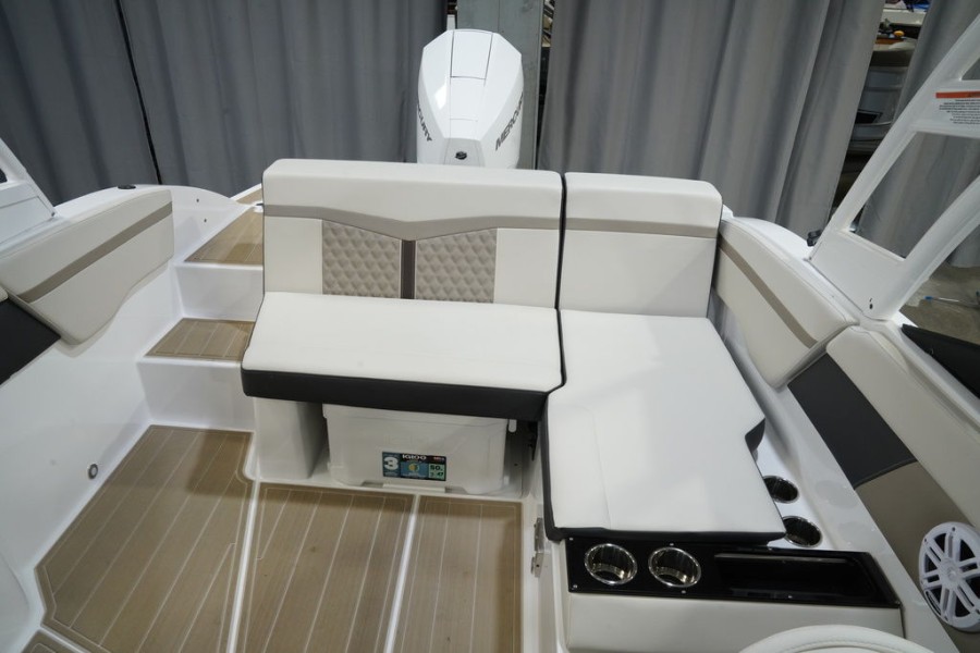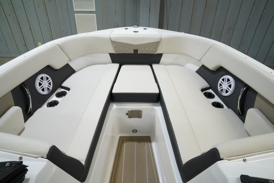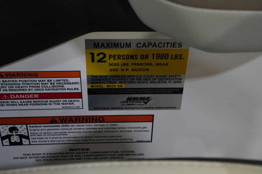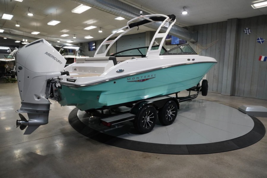OUTBOARD POWER HAS NEVER LOOKED SO GOODMasterfully crafted, and innovatively designed, Monterey’s M225 offers uncompromising performance with elegant styling. Featuring an LOA of 22’, the M225 offers plenty of room for your entire crew. Add in the helm and stern stereo remote, as well as the optional wakeboard tower and you’ll have everything you could ever need to begin your on the water adventures!